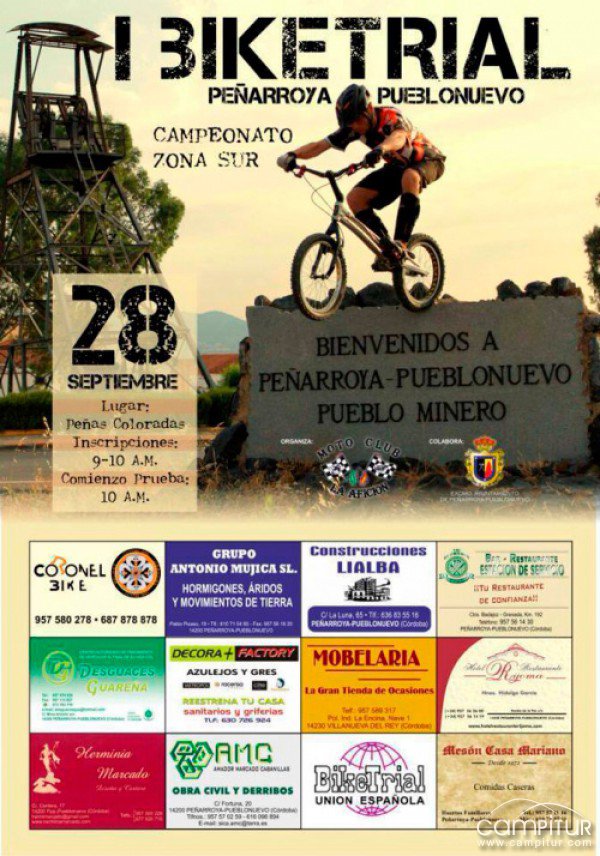 El próximo domingo, 28 de septiembre, la localidad cordobesa de Peñarroya – Pueblonuevo acoge la celebración del I Bike Trial Campeonato Zona Sur