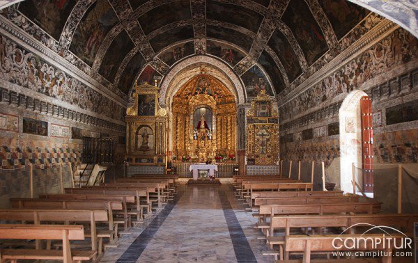 Las más antiguas son las del zócalo del templo que corresponden a finales del siglo XV, mientras la decoración de la bóveda de la nave es de 1736 y las pinturas del camarín datan de 1803.